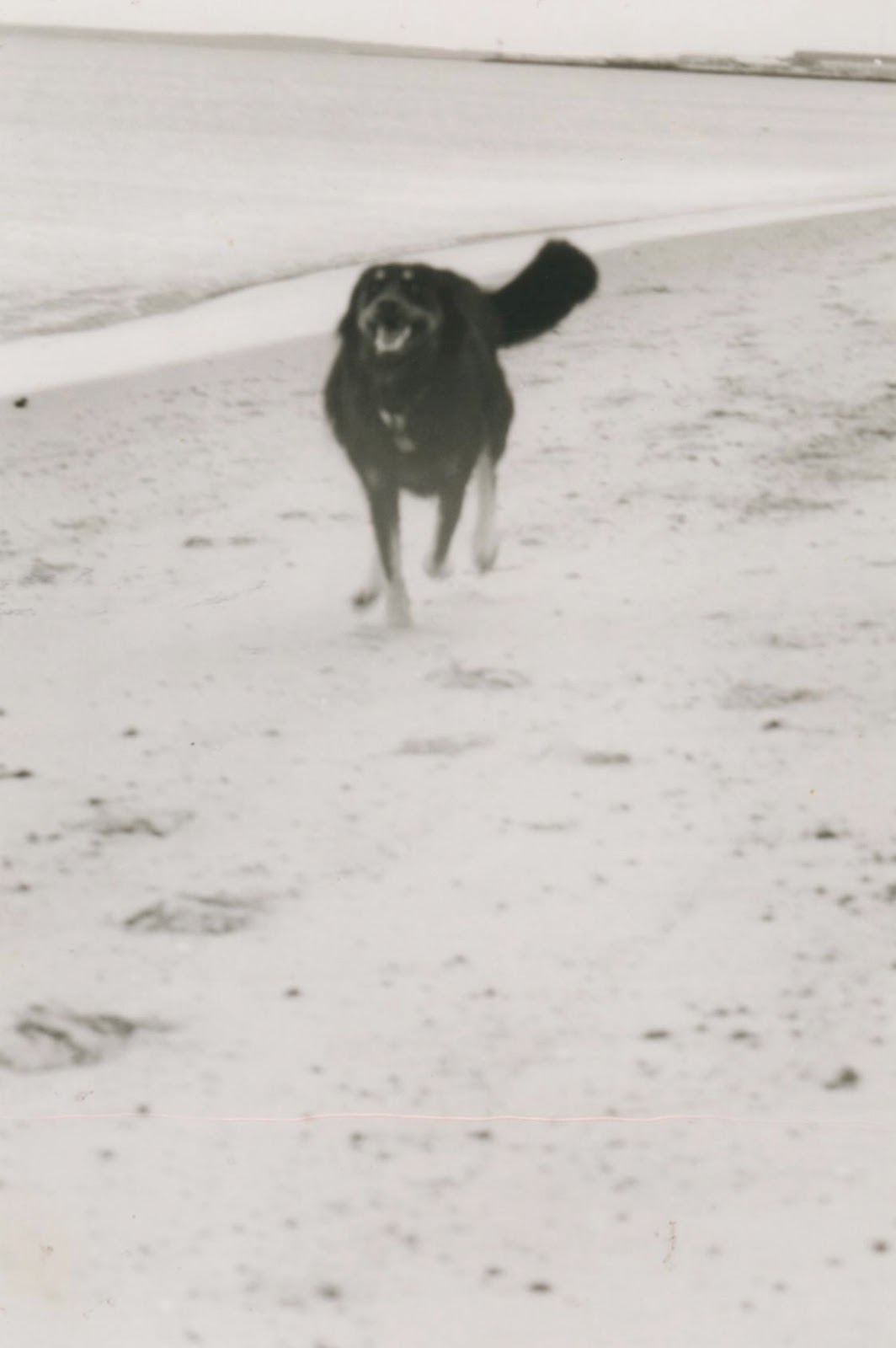 | I love it when it snows. Here I'm running in our backyard. George throws snowballs and I chase them. |
