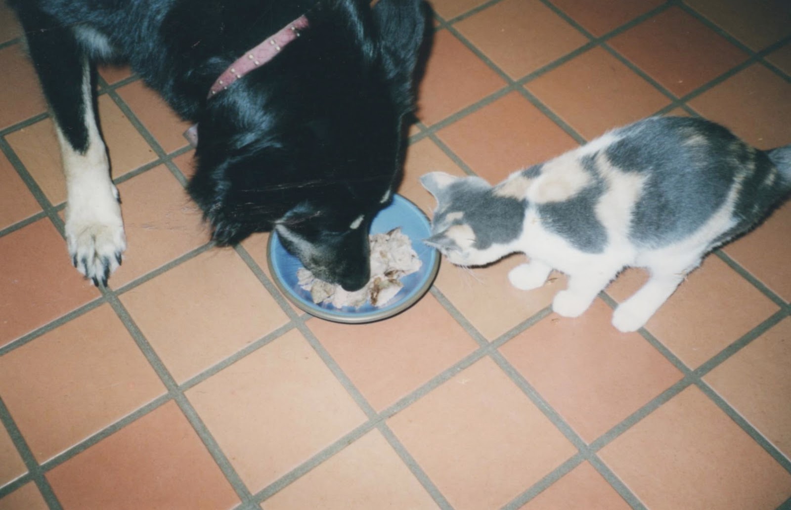| The cats are allowed to eat from my dish, but I'm not allowed to eat from their dish. I don't understand the double standard. |