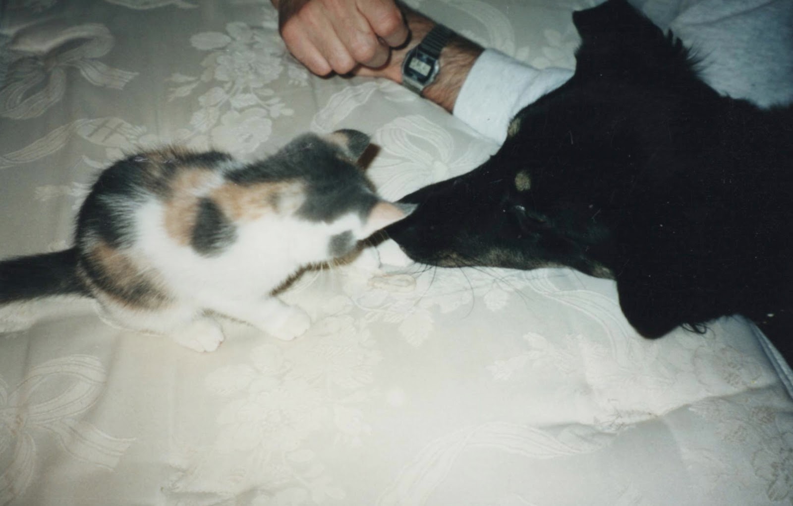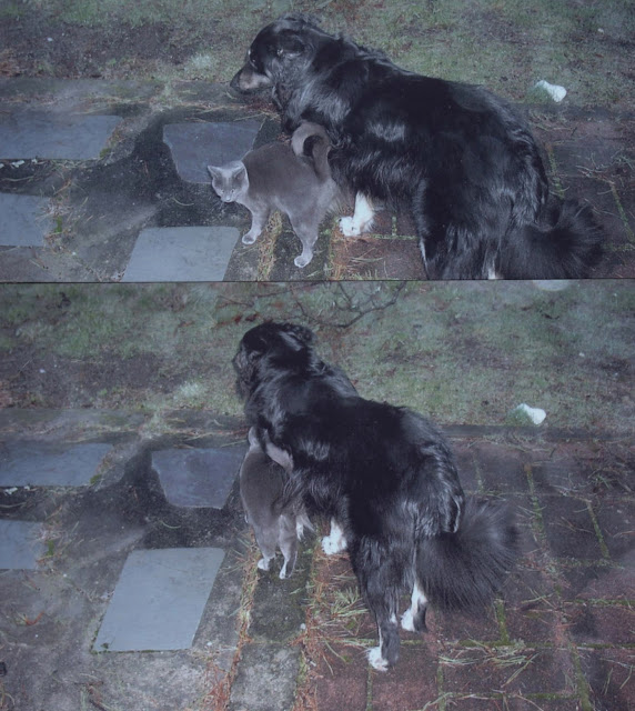 | In fact Emma's become a pest -- trying to nuzzle me, even putting her paws around my neck, acting like we're best friends or something. From my perspective, definitely NOT! |
